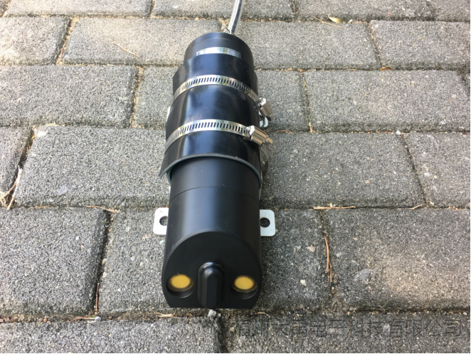 在下水道內,如果沒有沉積物,我們把傳感器安裝在管道底部的正中央。如果有沉積物,把傳感器安裝在沉積物的旁邊。為了防止水流沖擊變動傳感器的安裝位置,傳感器底部有一個基座,專門用來固定在管道上。同時,傳感器要裝在靠近窨井的下水道里面,這樣既便于安裝,又利于維修和更換。
